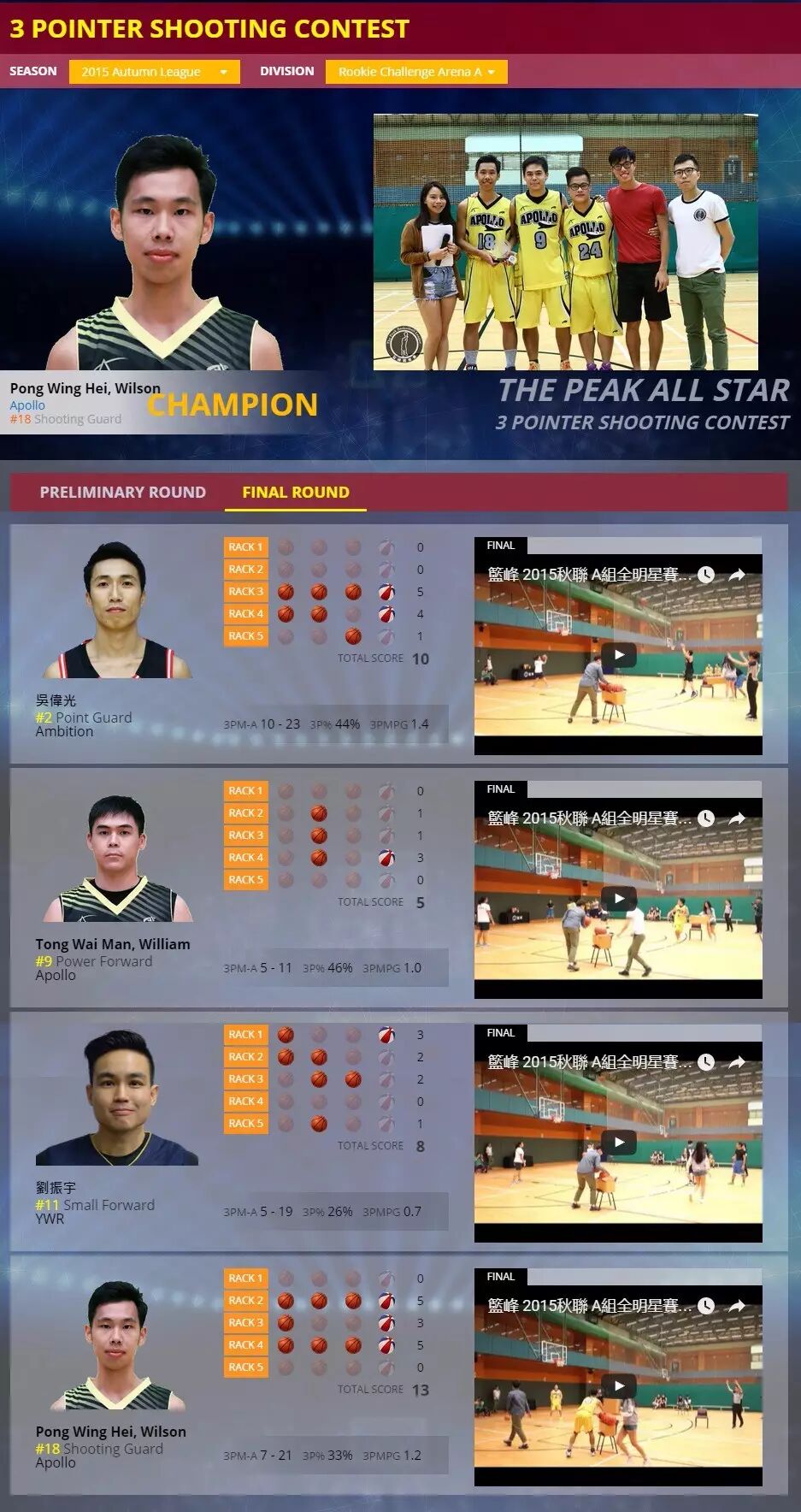 在瀏覽了數十個香港私人籃球聯賽的網站後,籃峰的主頁簡直是混沌中的一束光,給人視覺和邏輯上的撫慰。籃峰的網站做得十分用心、美觀,且條理分明。這裏有詳盡的賽事安排、個人數據統計、比賽影像、個人網站等。