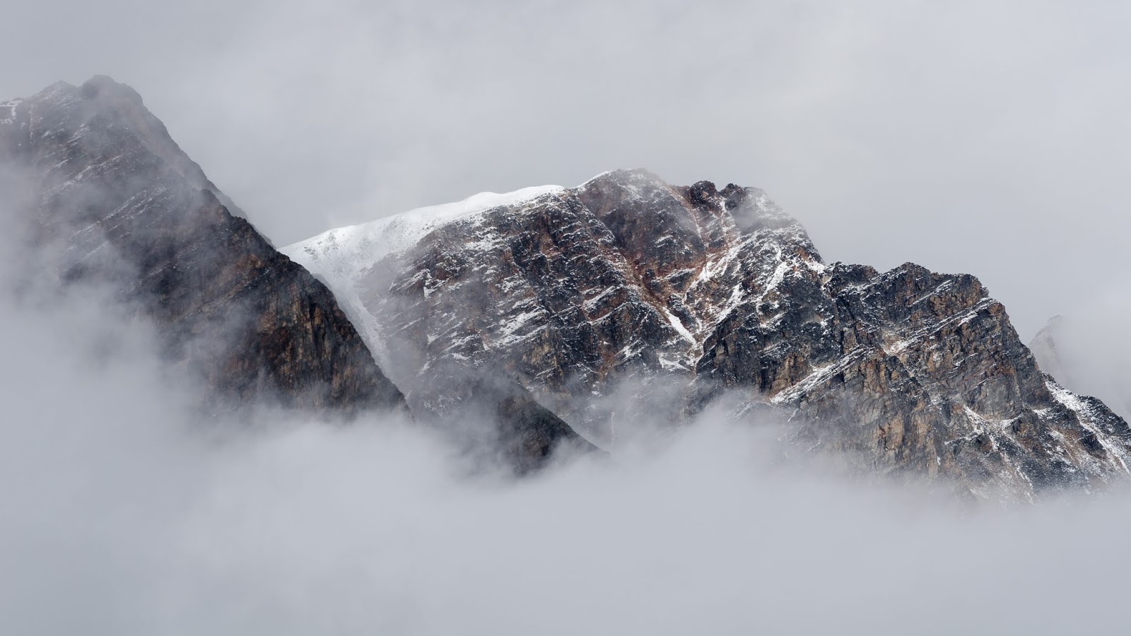 "Angel Glacier rests her wings in the cirque between Mt. Edith Cavell (left) and Sorrow Peak (right). "