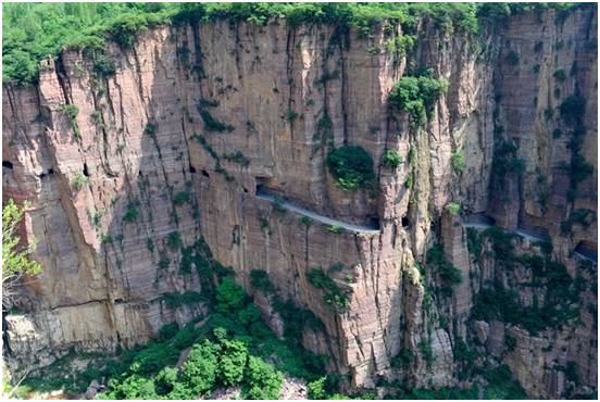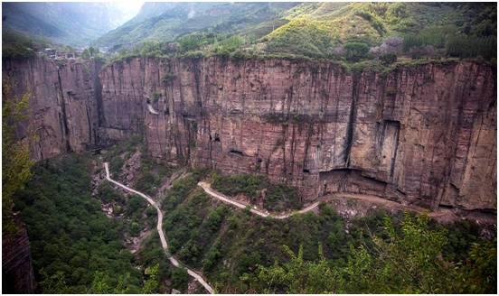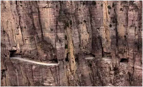 這是一條由郭亮村村民獨立手工曆時五年完成的,被譽為“世界第九大奇跡”、“世界最險要十條公路之一”全長1300米,高5米,寬僅4米。