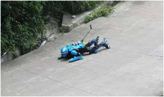 在自己的身上裝滿了輪滑,滑下去的呢?