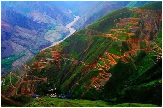 一條又深悠長的公路似乎就懸掛在山體岩石之上,看得人提心吊膽,似乎比川藏線還要驚險刺激。