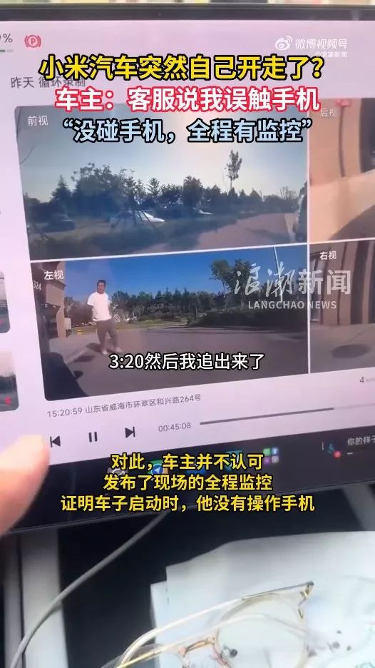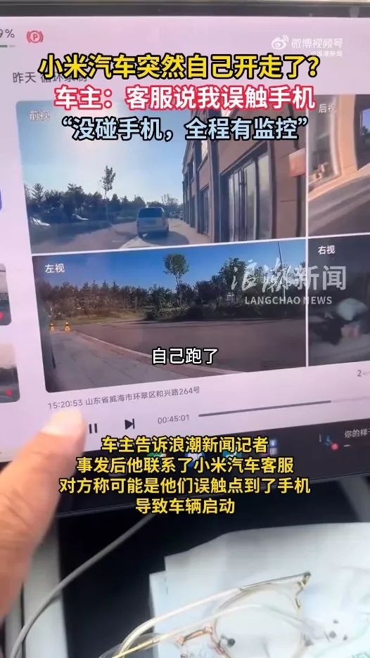 山東威海一名小米車主反映,其小米汽車在無人操作的情況下突然自行移動,他否認客服提出誤觸手機致車輛啟動的說法,並公開閉路電視畫麵,“我沒碰手機”。