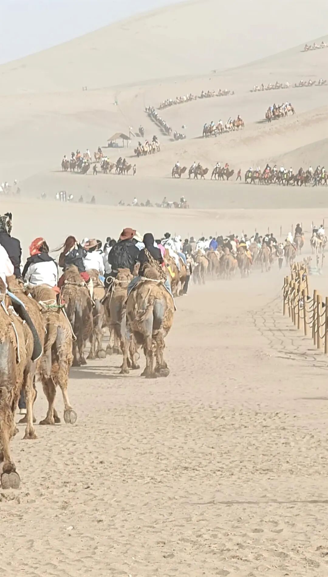 對此,有網友打趣道:“都說西出陽關無故人,怎麽來到沙漠全是人”“遊客比沙子還多”。