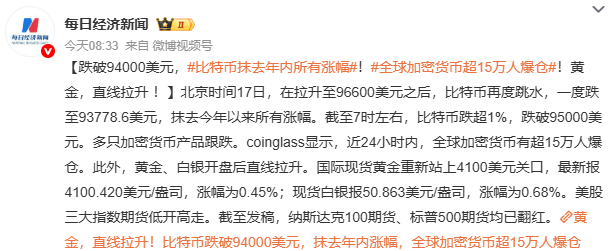 比特幣最終在11月跌破94000美元,已經抹去了今年的所有漲幅,並且24小時內,全球加密貨幣超15萬人爆倉。