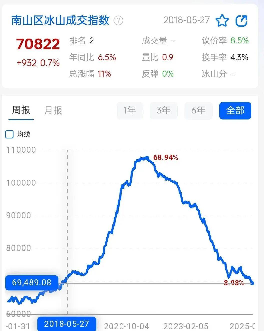 最新市場數據顯示,深圳整體房價已回落至2016年2-3月水平,幾乎完全抹去了2015年那一輪漲幅。