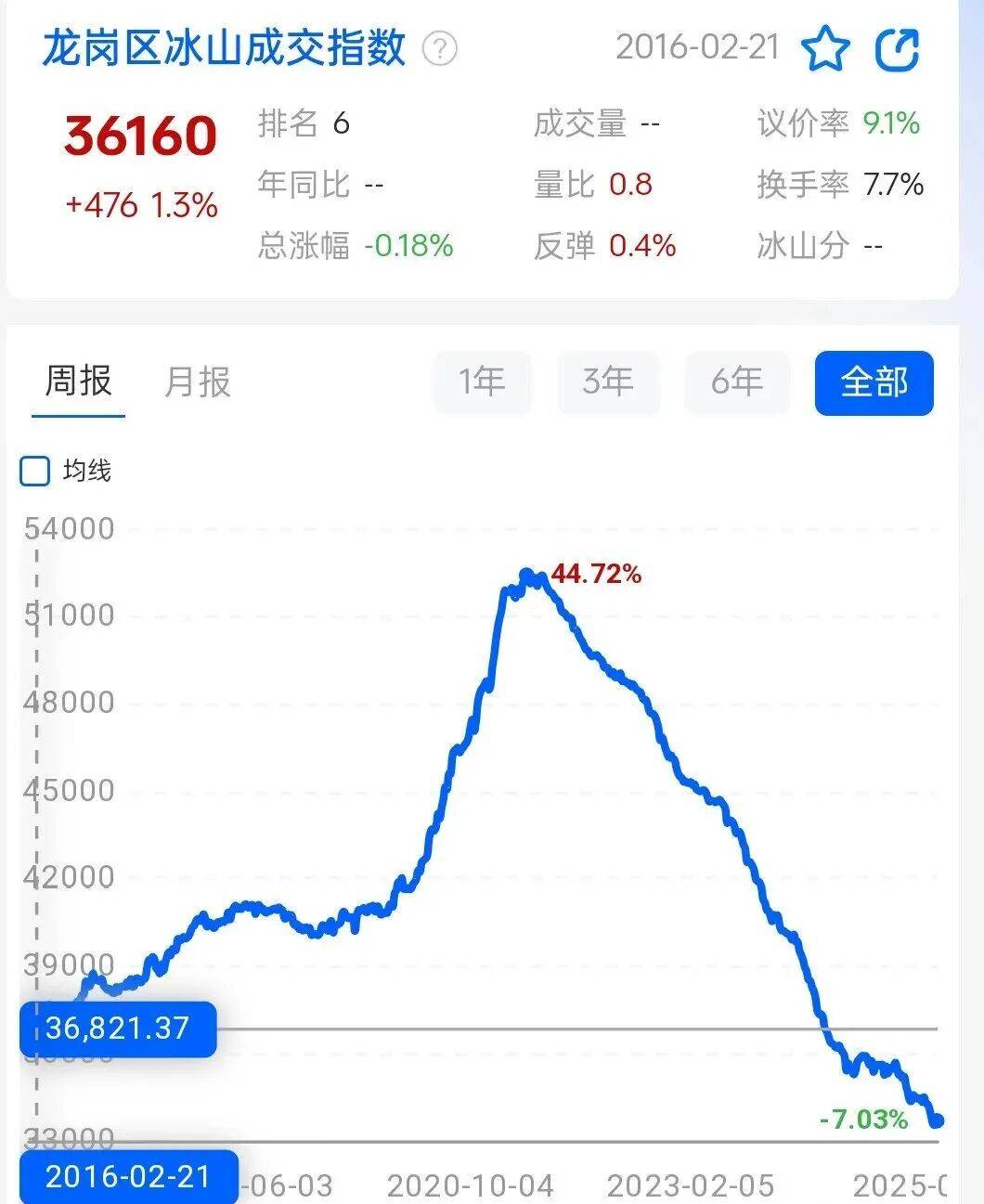 關於十年間跌幅情況,咖姐在之前的文章中介紹了2025年深圳跌幅情況,部分小區較樓市高峰期已跌穿50%,甚至達到60%。