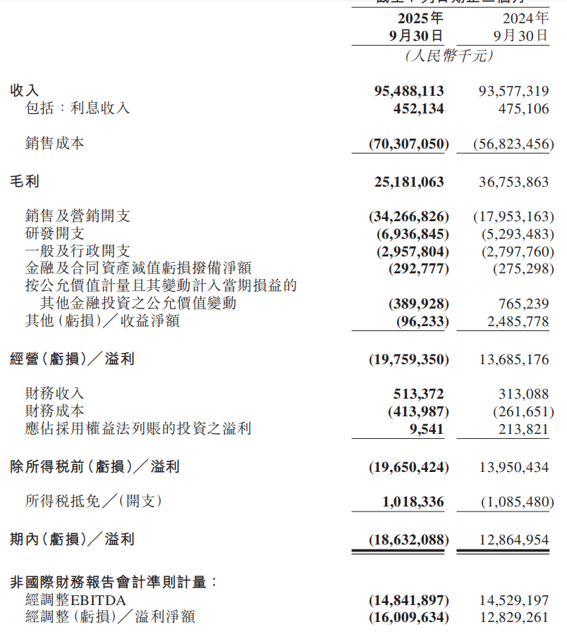 值得注意的是,該板塊由2024年同期盈利145.82億元轉為虧損140.71億元,經營虧損率20.9%;主要因毛利率下降及用戶激勵、推廣廣告開支增加。