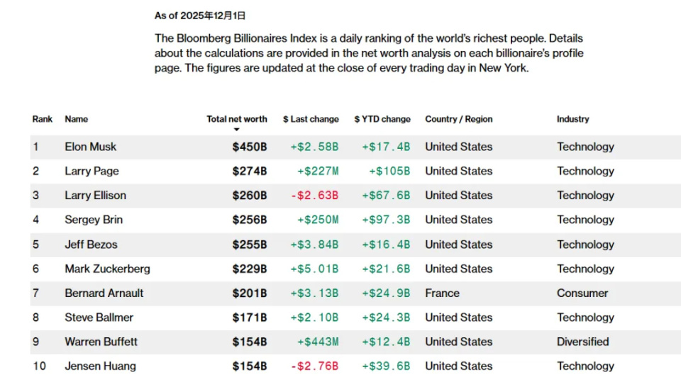 不過,2025年,去年還是世界富豪榜第五名的拉裏·埃裏森有望角逐前三名幾成定局。在短暫登頂全球富豪榜後,他在第二名的位置上呆了70餘天,直至11月25日被反超,位列第三。目前的第二名,是穀歌的聯合創始人。
