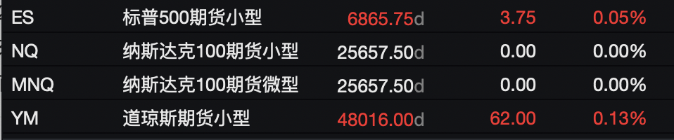 標普500期貨漲0.05%,納斯達克100期貨基本持平,道瓊斯期貨漲0.13%