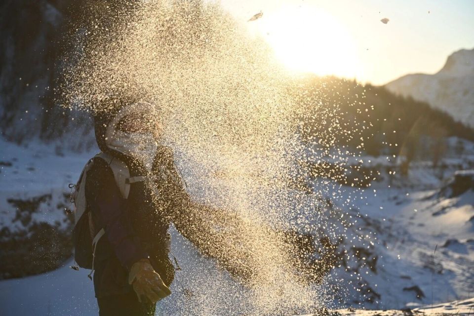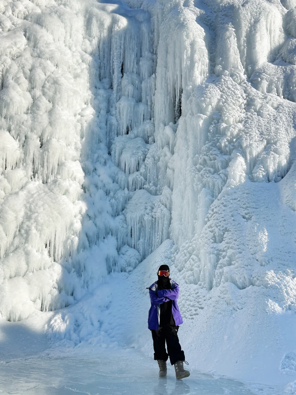 它直接切換到“雪原模式”,零下三十度,大雪封山,冰瀑高懸。 這時候你可以穿得像頭熊,去爬冰瀑,去雪地裏“打滾”;你的快樂是聽覺上的,是“嗷嗷鬼叫”的;是失控的,是徒步走不動了,幹脆“屁降”一路滾下山的狼狽。冬天的抽象,是“肉體在渡劫”,是“雪山飛狐”的“我命由我”。