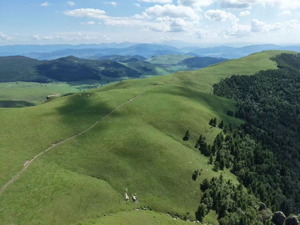 張家口蔚縣切換到“草甸模式”,漫山遍野綠得跟Windows XP桌麵似的,野花一開,往那一站,穿著白裙子,就能cos《音樂之聲》的女主角,風吹草低見牛羊,高山草甸的夏天,美不勝收。