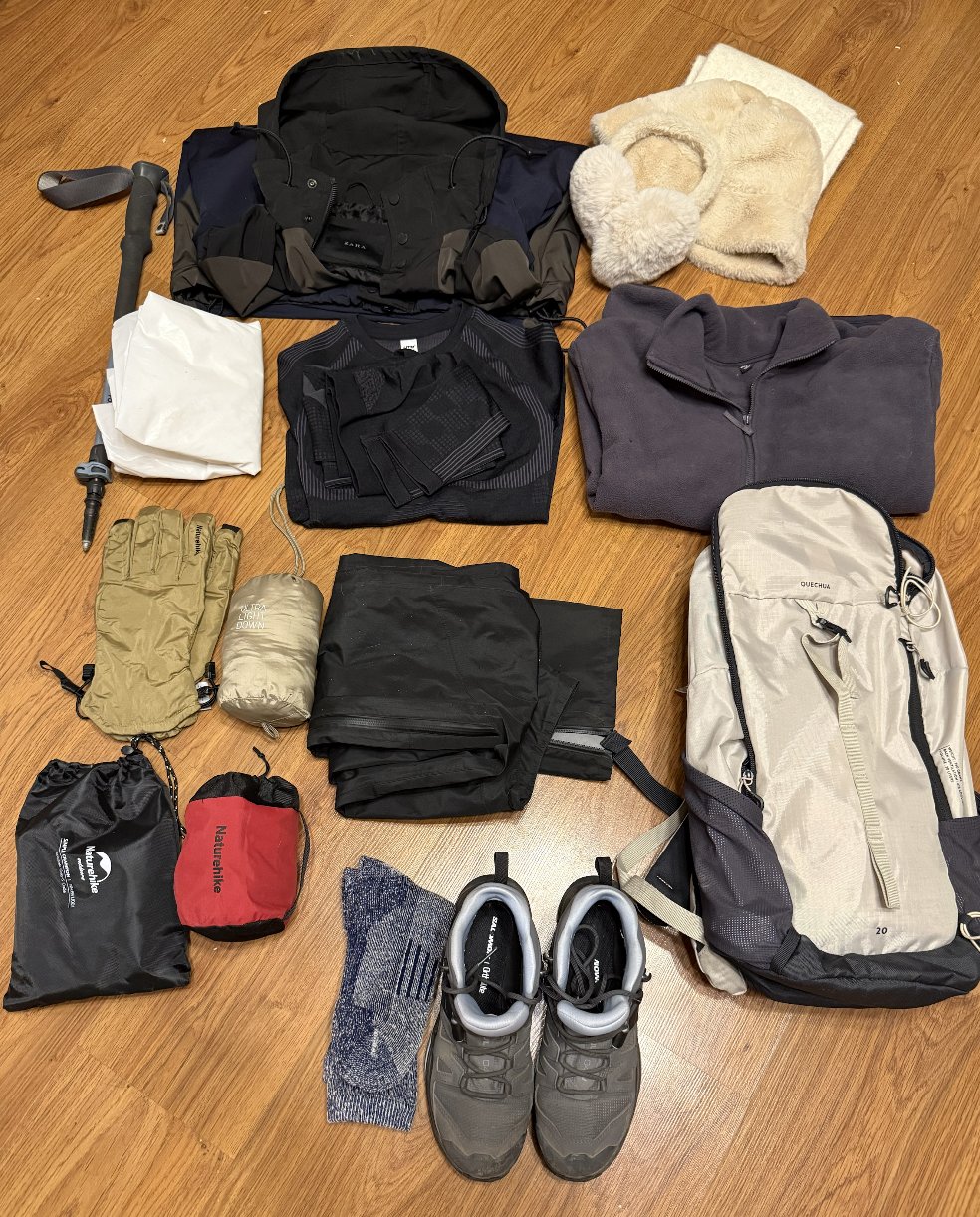 徒步要買一整套冬季防禦係統,冰爪、雪套、美利奴速幹衣……