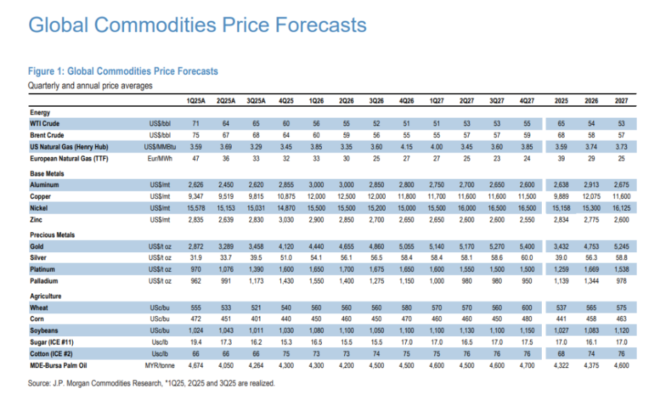 此次再平衡的影響遠不止於貴金屬,不同指數之間的權重調整差異,也將在其他大宗商品上製造出複雜的多空博弈。據摩根大通分析: