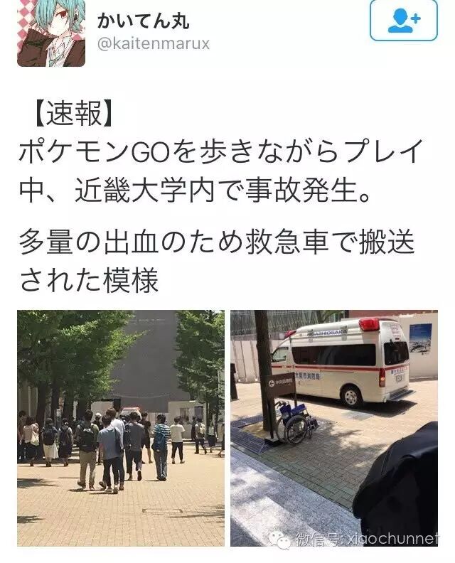 在近畿大學裏邊走邊玩「Pokemon GO」發生了意外…被救護車拖走的訓練師…這個真的不是在玩大富翁麽…