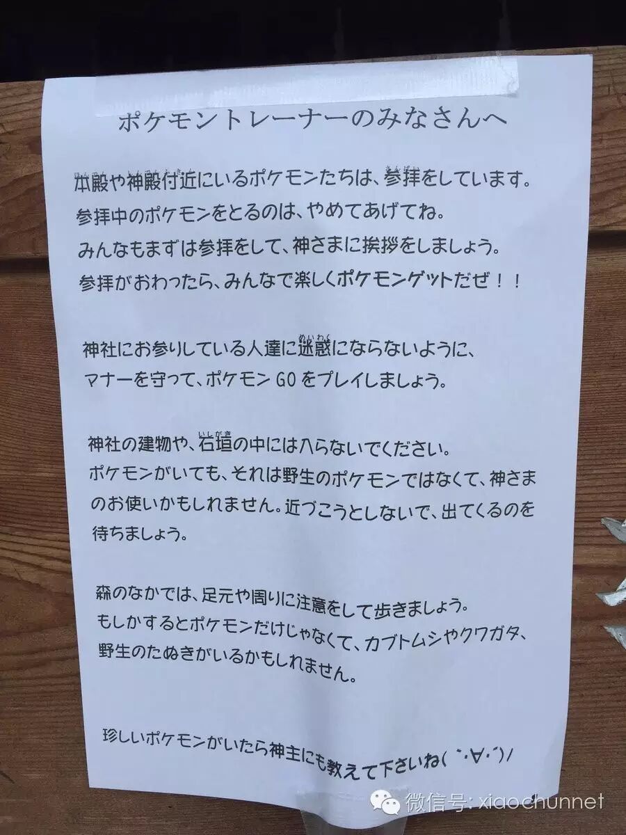 “本神社裏的Pokemon都是來參拜的,煩請大家不要抓參拜中的Pokemon們,也請大家專心拜神,不要給別人添麻煩。”
