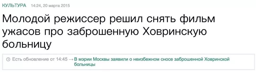 △ 年輕導演要拍關於Khovrin醫院電影的新聞截圖