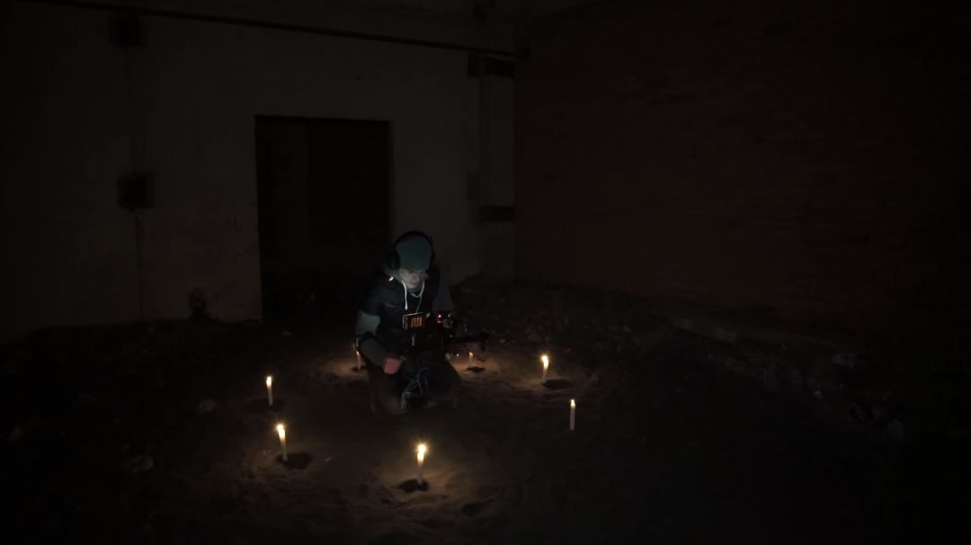 他在一個深夜帶著設備跑到Khovrin內部探險。還在樓內發現了動物的內髒。