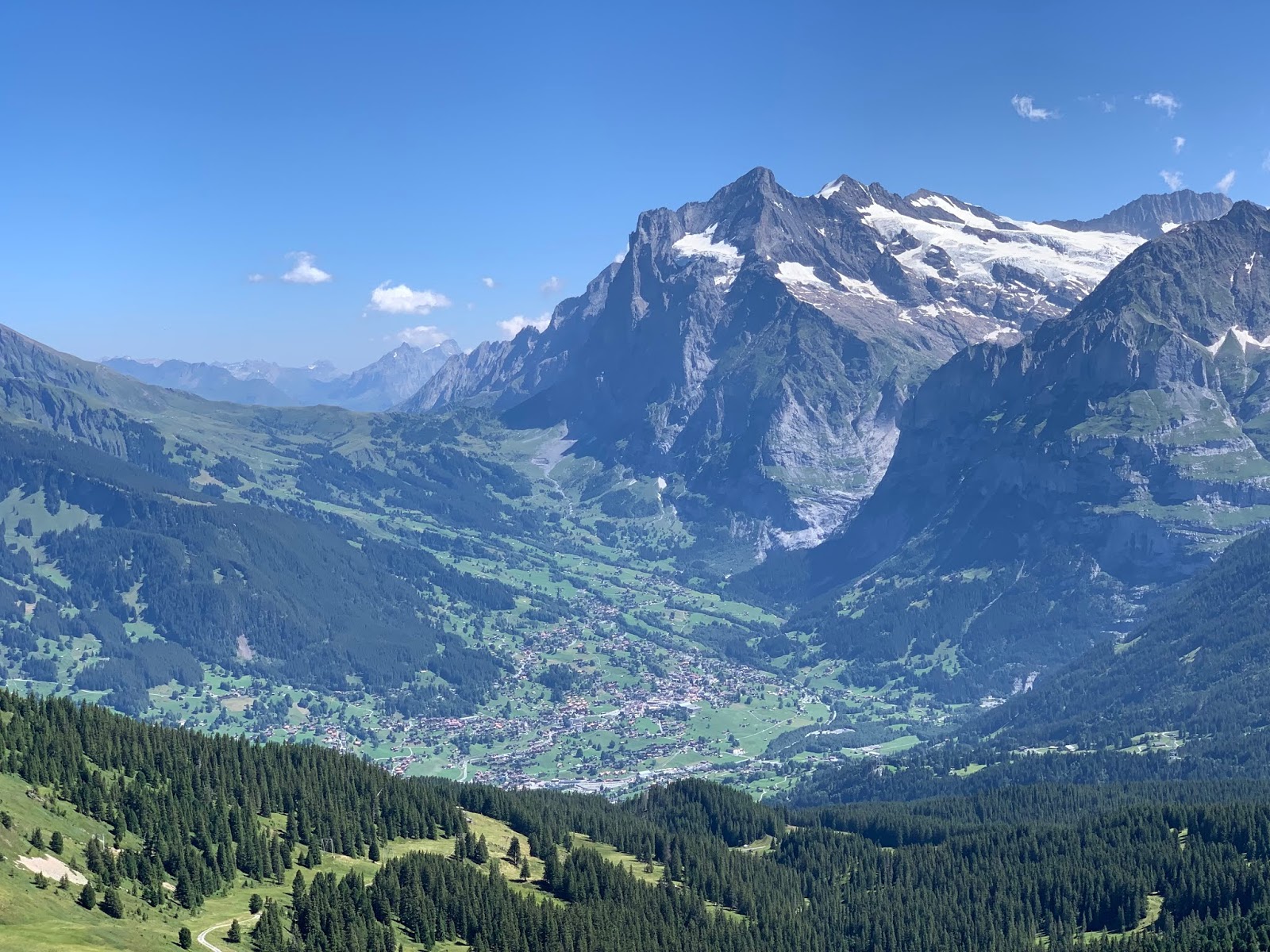 這是少女峰東側山穀中的格林德瓦Grindelwald,文根Wengen和勞特布龍嫩Lauterbrunnen都在西側。