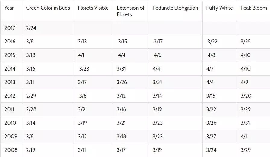 櫻花的花期跟當年的天氣狀況關係很大,所以不是很好預測。