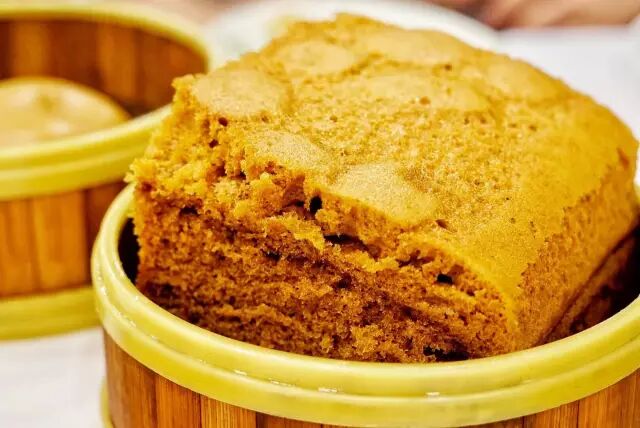 茶樓點心大多每天早上現做,但馬拉糕要好吃,得提前三天發酵,發酵足夠的馬拉糕會呈現琥珀色,帶有種香,風味足,還會有三層氣孔:表麵的突起, 頂層的直孔和底層的橫孔。