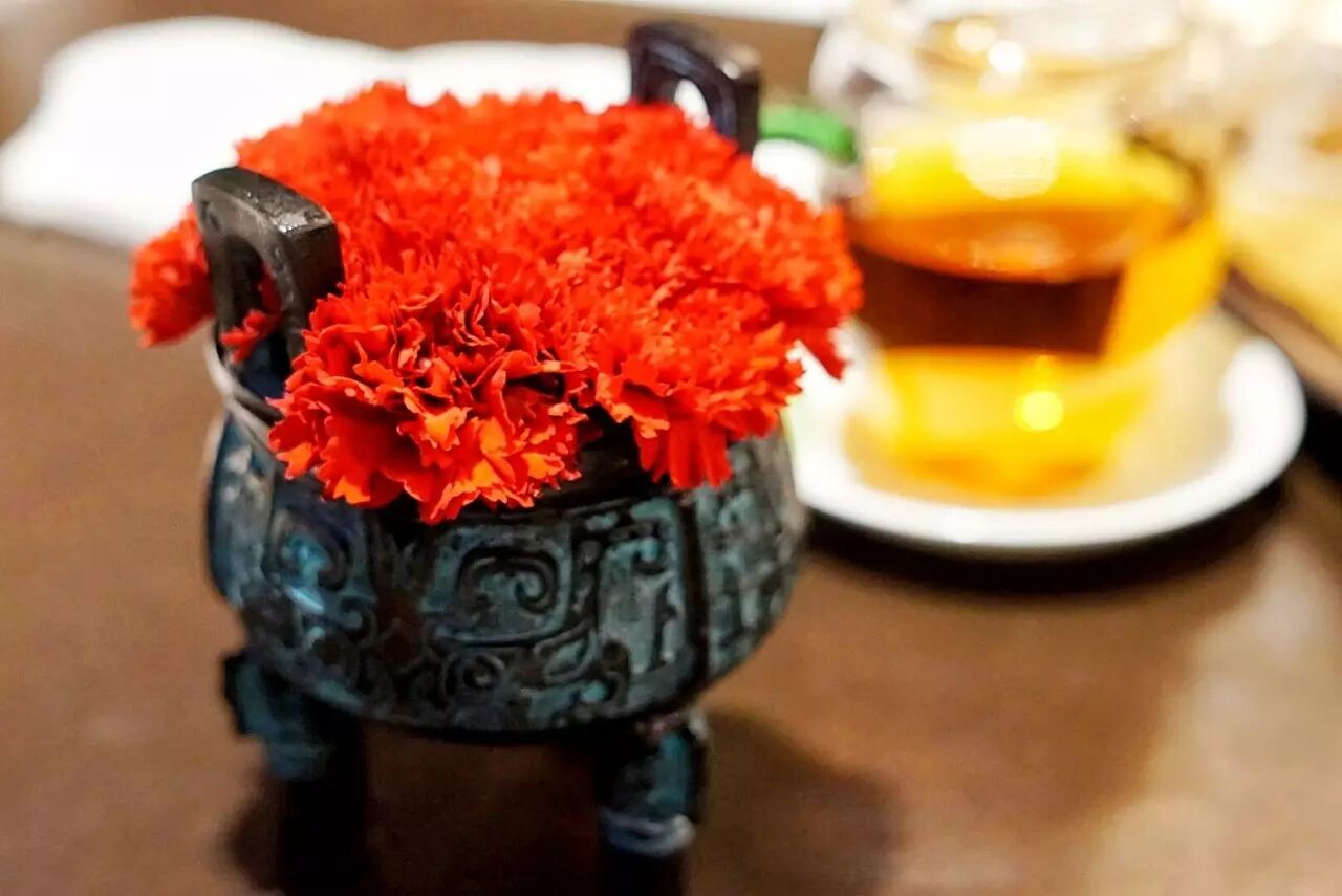 茶單也很有意思,竹簡的形式呈現,品種不少,除了常見的普洱、鐵觀音、紅茶、菊花,還有單樅、玫瑰等。