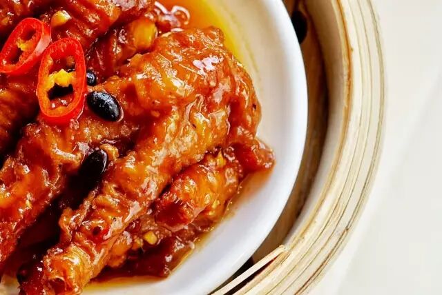 先炸後蒸的鳳爪皮骨分離,鬆軟而酥爛,調味上豆豉味和甜味都恰到好處,醬汁齒頰留香,吮骨頭也成了一種樂趣。