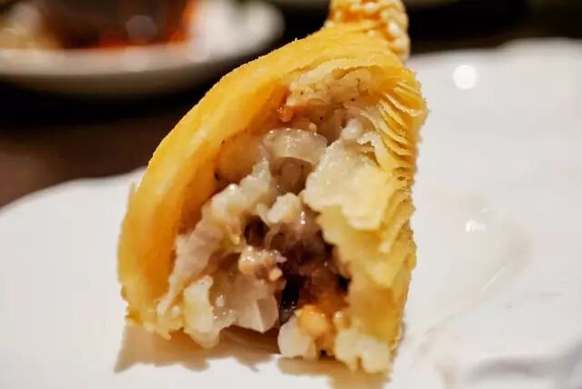 這份菌菇餃來自利苑,別看小巧,皮子裏包了大量餡料,全靠皮子的韌性讓點心飽滿。