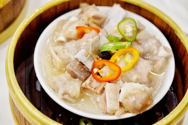 早茶的蒸排骨,肉質要處理得更鬆軟,讓口感更早茶一點。用流水慢慢將排骨的血水衝走再進行調味醃製,這樣蒸出來的排骨會更清爽鬆軟。夾起一小塊放進嘴裏,輕輕一吸,滑嫩脫骨。