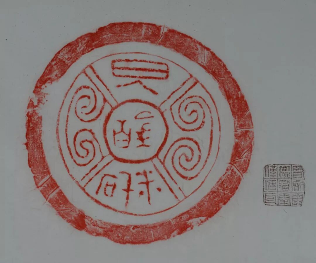 西漢宮殿用瓦,直徑十七厘米。中心圓突外雙欄四格界,每格一字,篆書。結體疏朗寬博,筆畫圓潤。“蘄年宮”,秦宮名,“蘄”同祈,即祈年宮,有祈求豐年之意。《漢書·地理誌》載:“祈年宮,惠公起。”《三輔黃圖》載:“蘄年宮,穆公所造。”《史記·秦始皇本紀》載:蘄年宮在雍,秦始皇九月宿祈年宮,加冕禮也在祈年宮舉行。這說明祈年宮是秦代很重要的宮殿。漢承秦製,此瓦即為漢代修葺祈年宮所用瓦當。出土於陝西鳳翔縣孫家南頭堡子壕遺址。