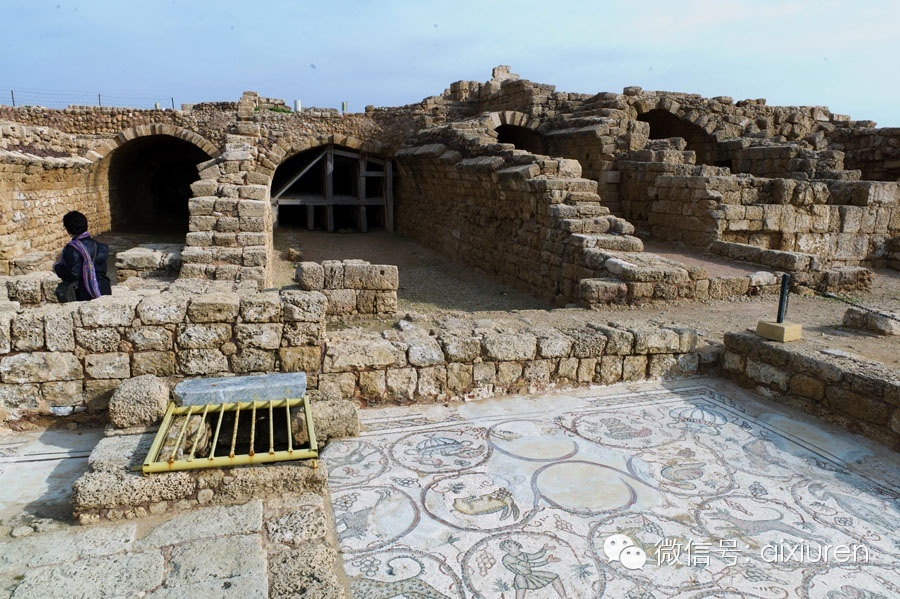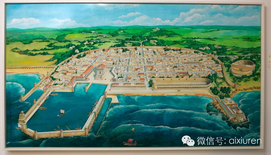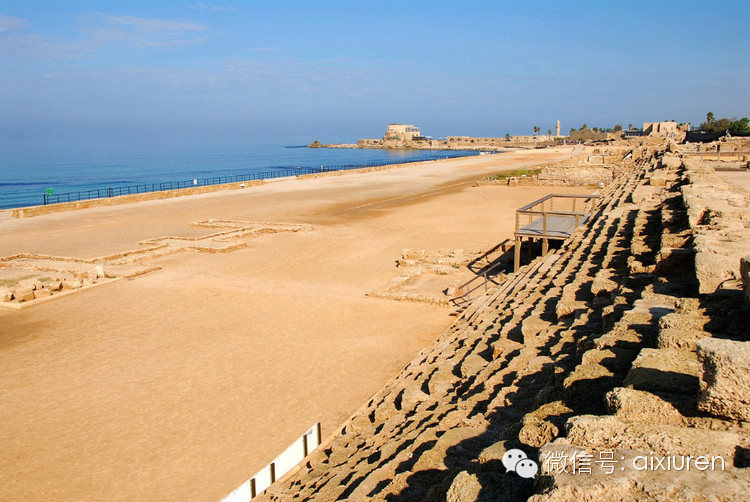 這張畫描繪的就是凱撒利亞全盛時的景象,多麽的奢華!深入海中的碼頭和宮殿,神殿,鬥獸場和大劇院。希律王是個建築師,這些建築保留至今,無疑是最輝煌的。