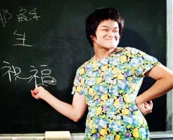 她笑著再回頭看了看大家後,又轉過身去繼續寫著: