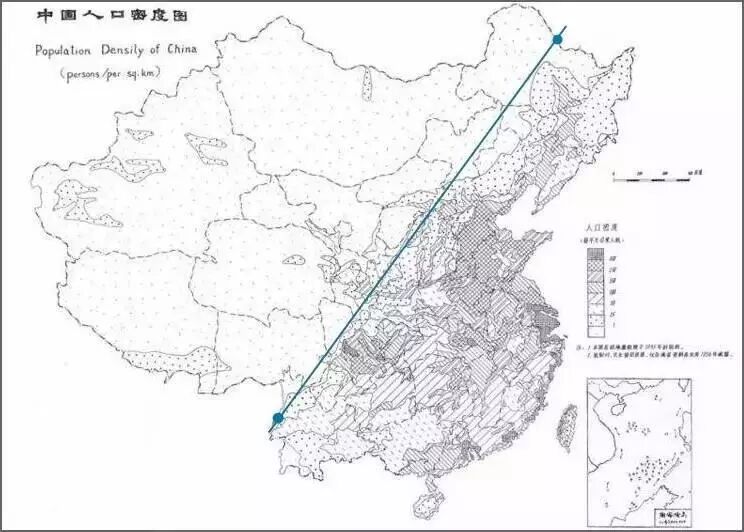 “胡煥庸線”,也叫“黑河-騰衝線”