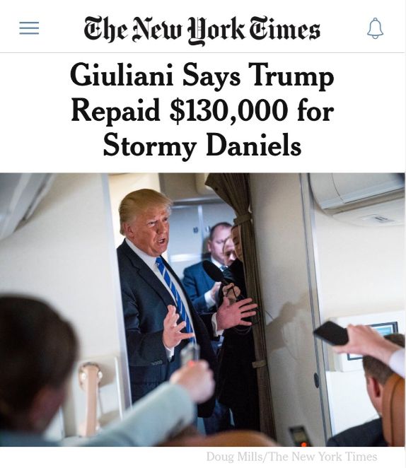 本周三(5月2日),新近才成為特朗普總統私人律師的前紐約市長魯迪·朱利安尼(Rudolph W. Giuliani),在福克斯新聞電台(Fox News)Sean Hannity訪談節目中,出語驚人,讓整個媒體世界炸鍋了:特朗普總統償還了他的長期私人律師邁克·科恩(Michael D. Cohen)付給風暴姐的13萬美金的封口費。朱利安尼特別強調說,簽這個協議是為了家庭考慮,為了特朗普夫人考慮,所謂的花錢消災吧。