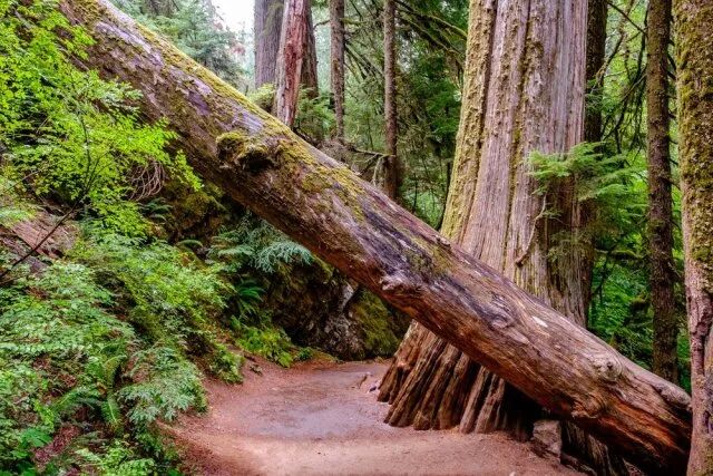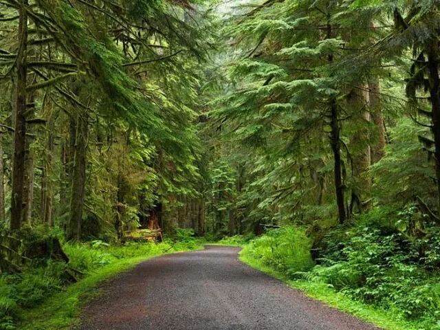 車在清掃出來的山道上勻速行駛,山路兩旁的樹木漸漸變得高大和匝密,我們已開到了著名的溫帶雨林景區,潮濕的苔蘚布滿小路,一些高大筆直的百年樹木被毛茸茸的綠色苔蘚裹得嚴嚴實實,看上去神秘而壯觀,(密集恐懼症者慎入)猶如進入了魔法森林,這裏曾經是電影《暮光之城》的取景地之一。