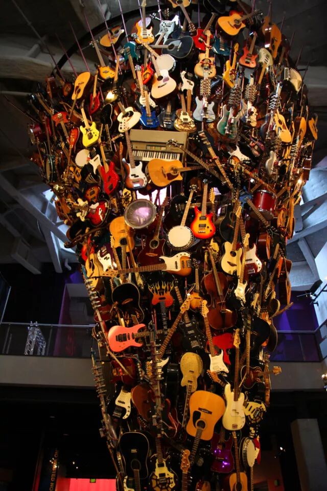 走進館內,高科技技術隨處可見,由七百件吉他打造的吉他柱子,更是壯觀非凡。