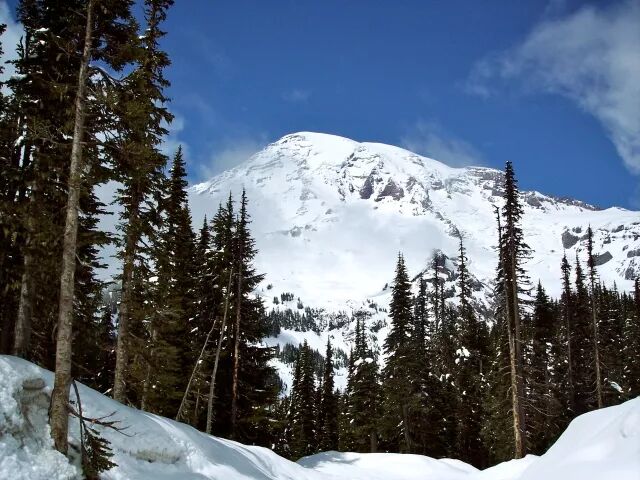 海拔14410英尺的的瑞尼爾山是一座活火山,是卡斯克德山脈中最高的山,也是美國大陸冰川最多的山峰。玄武岩石柱以及早期火山噴發遺跡和岩漿流見證了瑞尼爾山古老的地質史。