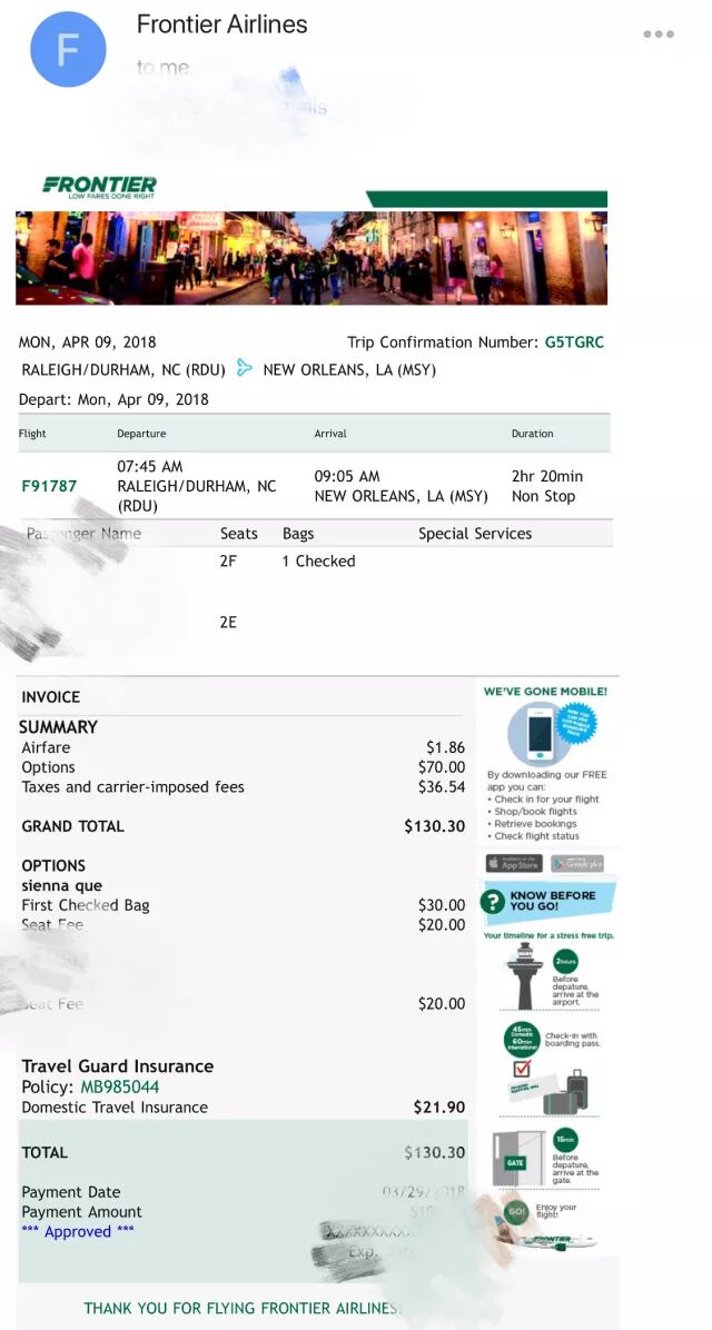 一般像西南航空公司和邊疆航空公司(frontier airline,酷熊和S寶本次旅程的航空公司。)會出現這樣讓人 震驚的機票價格,其次這樣的機票價格不是常常有,隻在某一天出現,一般會出現在周一和周四兩個時間段。不要以為20元機票就可以隨心所欲攜帶任何大件物品,每個航空公司也不是做慈善事業的,記住20元隻是裸票價格,隻允許你背個雙肩包和提一個手提包,任何拉杆箱出現請您去 托運行李處繳納行李費45元,網上繳費30元。