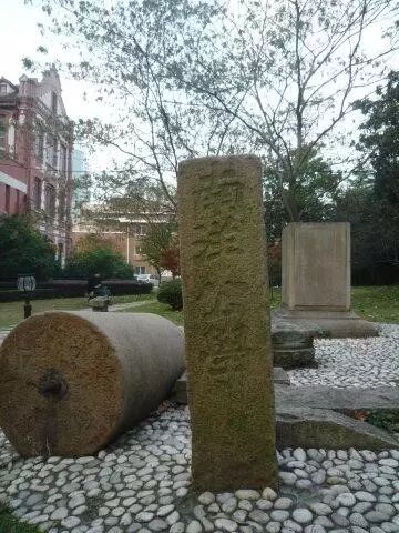 我走出地鐵站,沿著前法租界美麗的霞飛路前行(現為淮海中路),馬路兩旁盡是三十年代各式造型優美、古色古香的歐式洋樓;不久,便可望見有著中國宮殿屋簷、青磚壁瓦的交大古老校門,門口兩側站立著一對威猛的大理石獅子。老校門改建於1935年,門口仍留有1896年時期的古老燈柱及大理石校門橋,以及當年南洋公學的校名石碑及石碾。