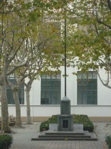 我在工程館內的中央草皮,還發現了一根矗立的銅柱,高度約一層樓高,乍看之下毫不起眼,但我再進一步仔細讀了基座上的碑文說明後,才赫然發現它其實大有來頭。1933年無線電發明人義大利人Guglielmo Marconi 訪問交大,親手把這根銅柱天線安置在這塊草皮上。