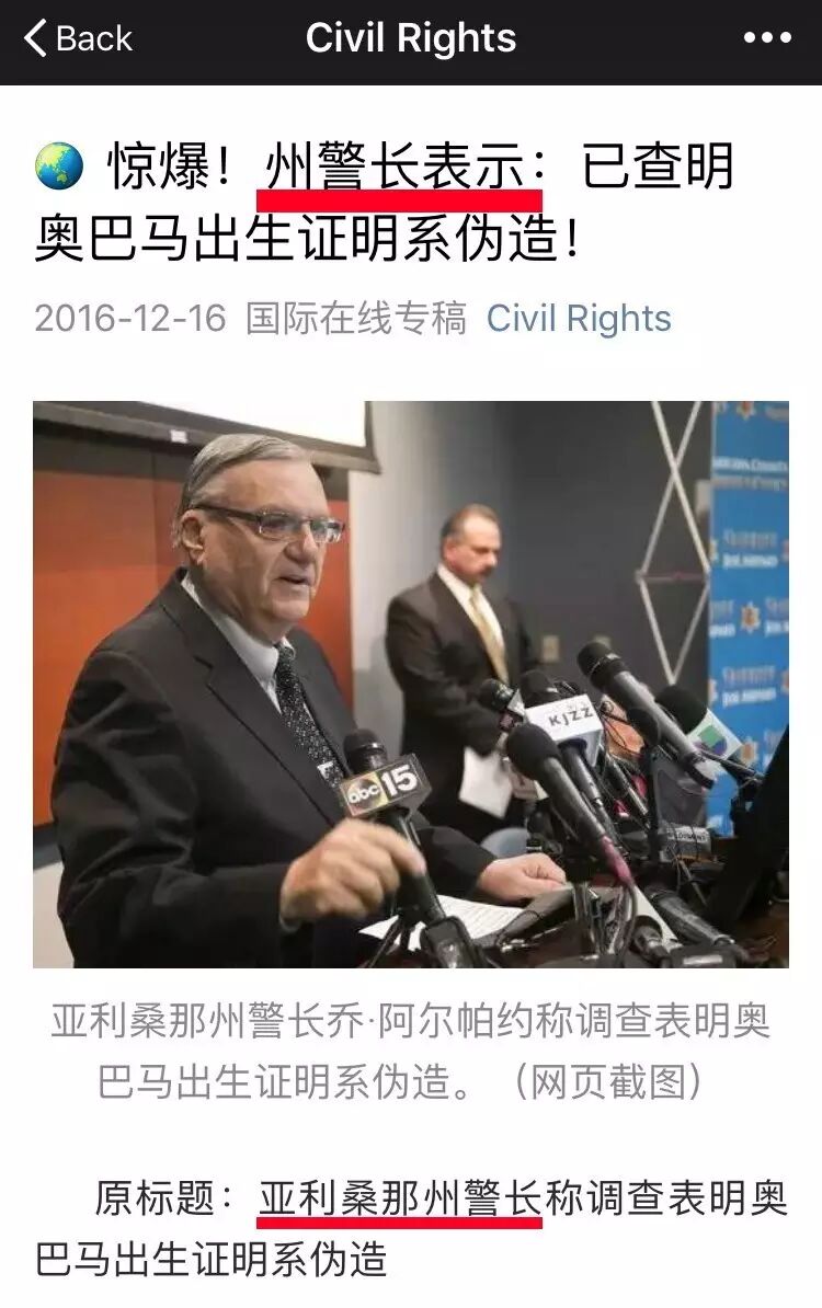 無毒有嘔,這位來自亞利桑那州“管得比較多”的縣警長和他背後的團隊就是職業搞黑奧巴馬出生問題的人物之一。在大選過後,連川普都不願公開與“birther”這種“職業”掛鉤的日子,Joe Arpaio依然在孜孜不倦地追求。