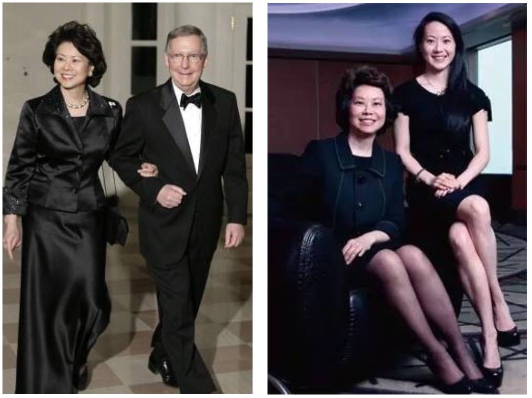 左:趙小蘭和丈夫McConnell(共和黨參議員領袖) 右:趙小蘭和妹妹趙安吉(家族企業掌門人)