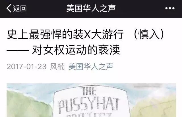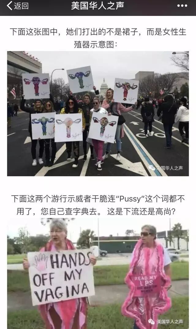 然而我們還是高估了造謠號的底線,今天“美國華人之聲”的一篇《史上最強悍的裝X大遊行(慎入)——對女權運動的褻瀆》直接閃瞎了我們的眼睛。
