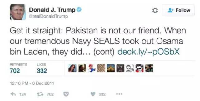 大家應該也不會忘記,本拉登當年匿藏在巴基斯坦,被擊斃後,川普還罵了巴基斯坦“不和你做朋友”。