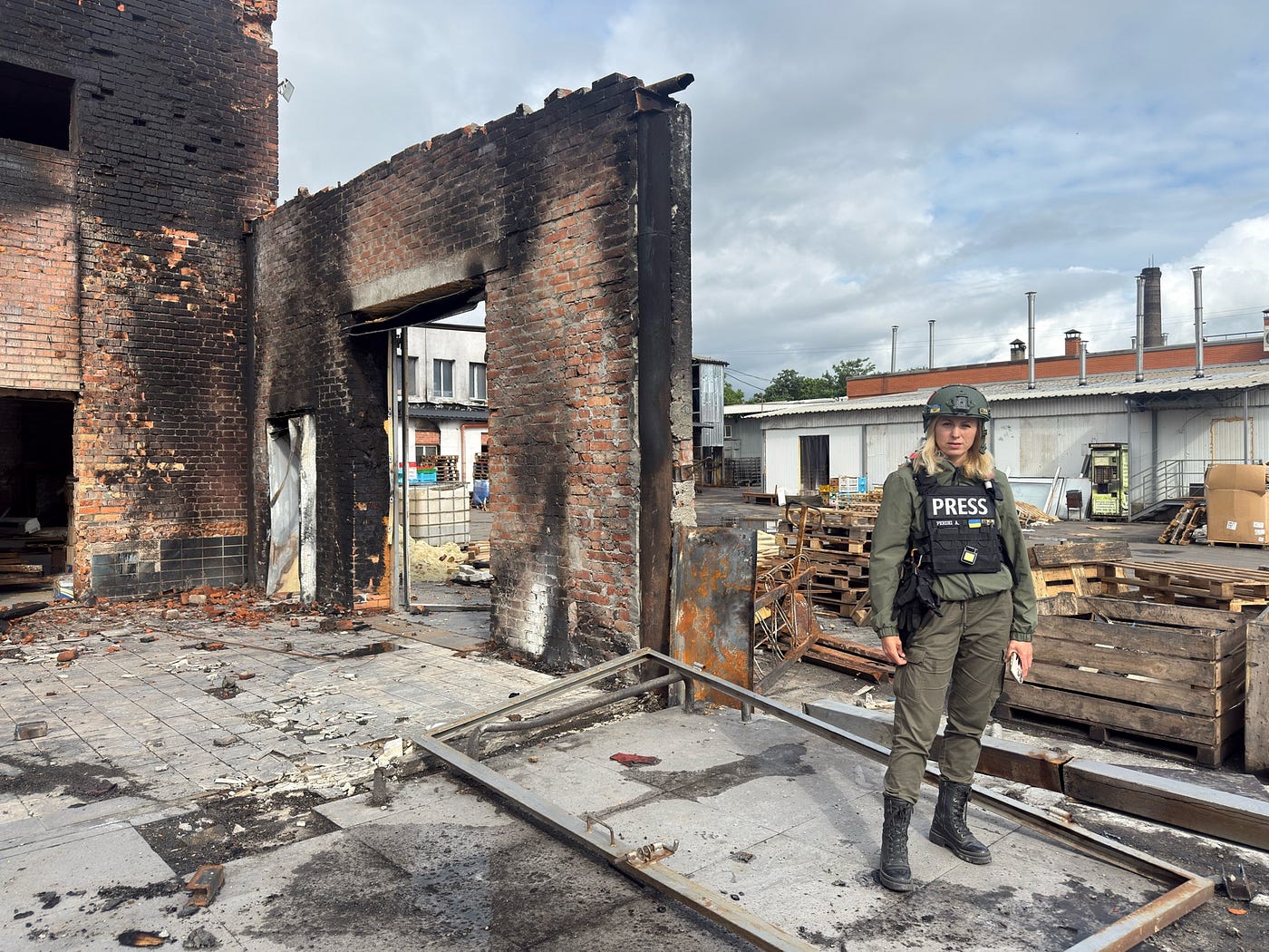 (圖:阿拉在蘇梅報道,身處遭到俄軍摧毀的烏克蘭民用基礎設施。 這裏曾是一家包裝魚類的商業公司 版權所有,Giorgio Provinciali)