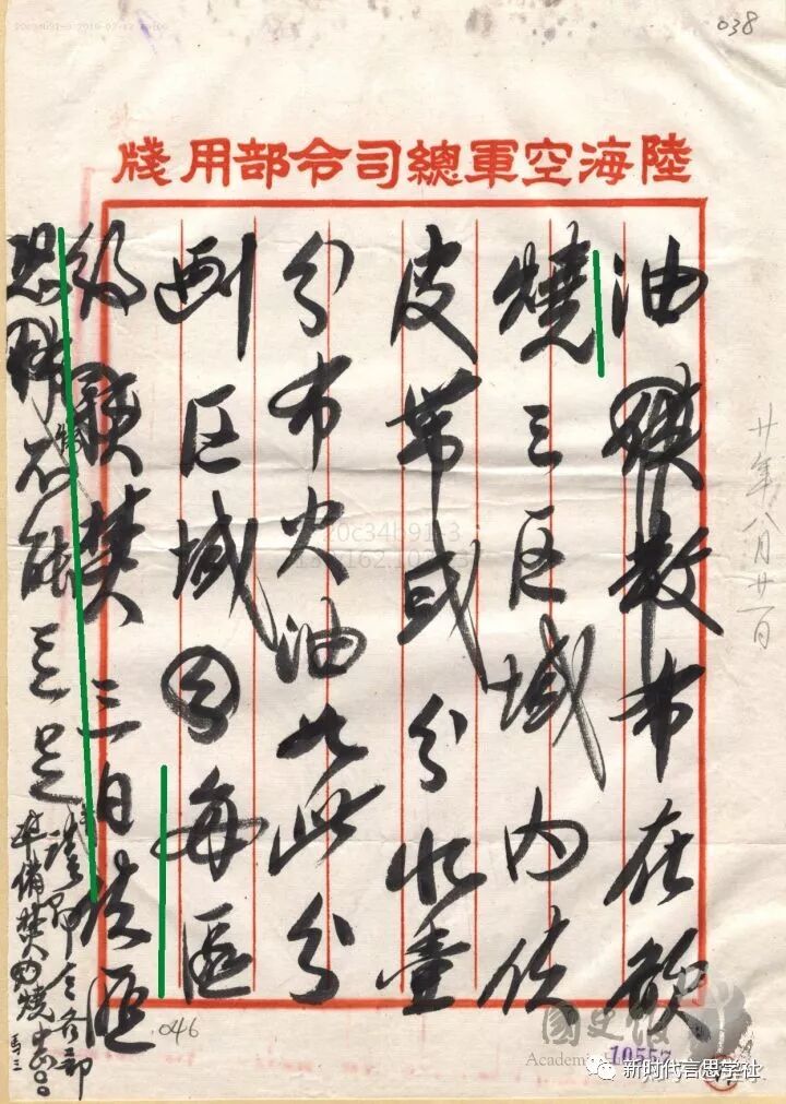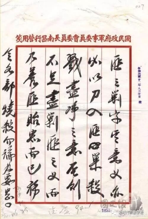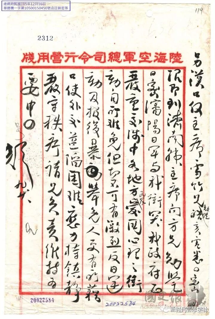 潢川劉總司令、沙市徐總司令,密。匪化已深之區域非準各部隊官兵盡量之燒殺,不能鏟除匪根。即推“剿匪”之“剿”字,其意義亦必以刀入匪巢、殺戮盡淨之意。否則不足盡剿匪之義,而乃養匪遺患而已。務令各部燒殺勿論為要。中正。