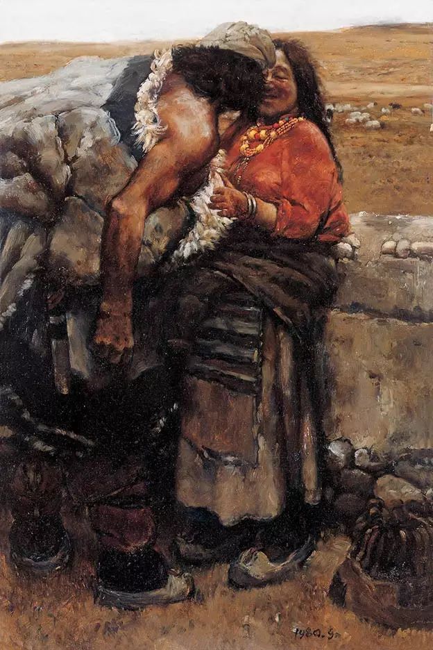 陳丹青為準備畢業創作,二次進藏體驗生活。創作了七幅油畫以及一遝速寫。七幅油畫分別為:《母與子》、《牧羊人》、《朝聖》、《進城之一》、《進城之二》、《洗頭》、《康巴漢子》。後來被約定俗成地統稱為《西藏組畫》。此時陳丹青隻有25歲。