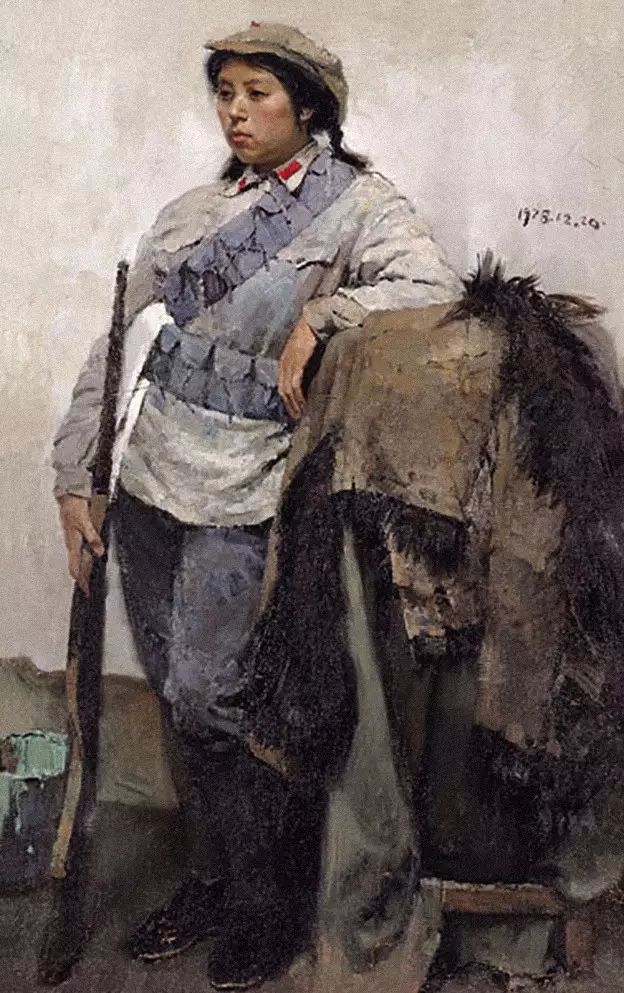 1974年,又被調到省裏參加油畫創作班,開始畫革命油畫,他的第一張油畫創作《老將和小將》。