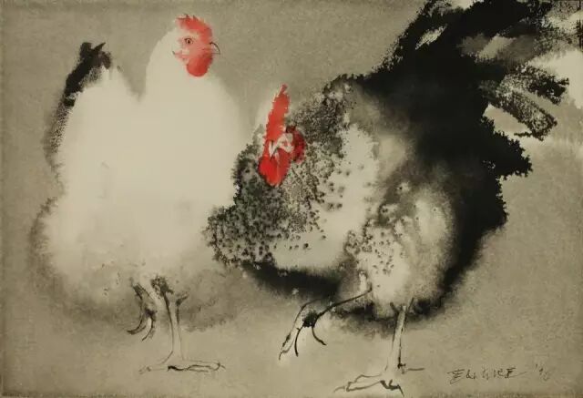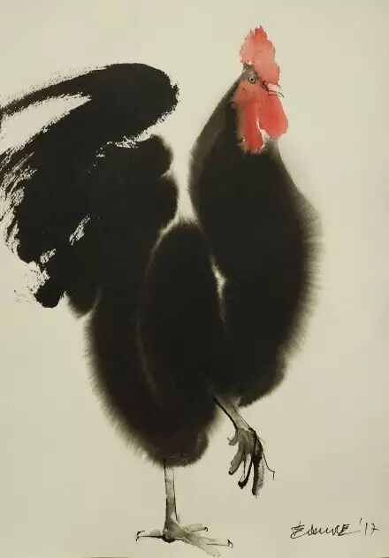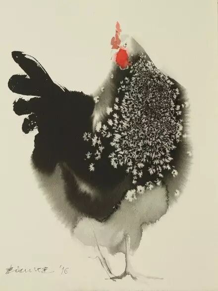 水墨公雞將技法展現得淋漓盡致。