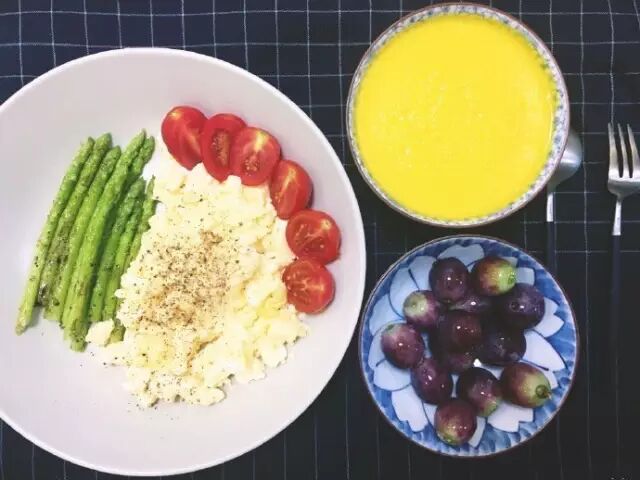 從一開始的水果搭配,然後再加上一些蒸煮的五穀雜糧;