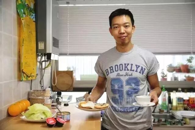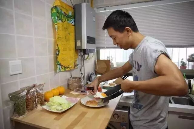 早上時間緊張,他就趁周末去超市買成堆食材,然後大袋小袋往家裏搬。